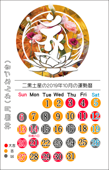本命星が二黒土星の人は、明治41年、大正6年、昭和1・10・19・28・37・46・55年、平成1・10・19年の立春から翌年の節分までに生まれた方です。